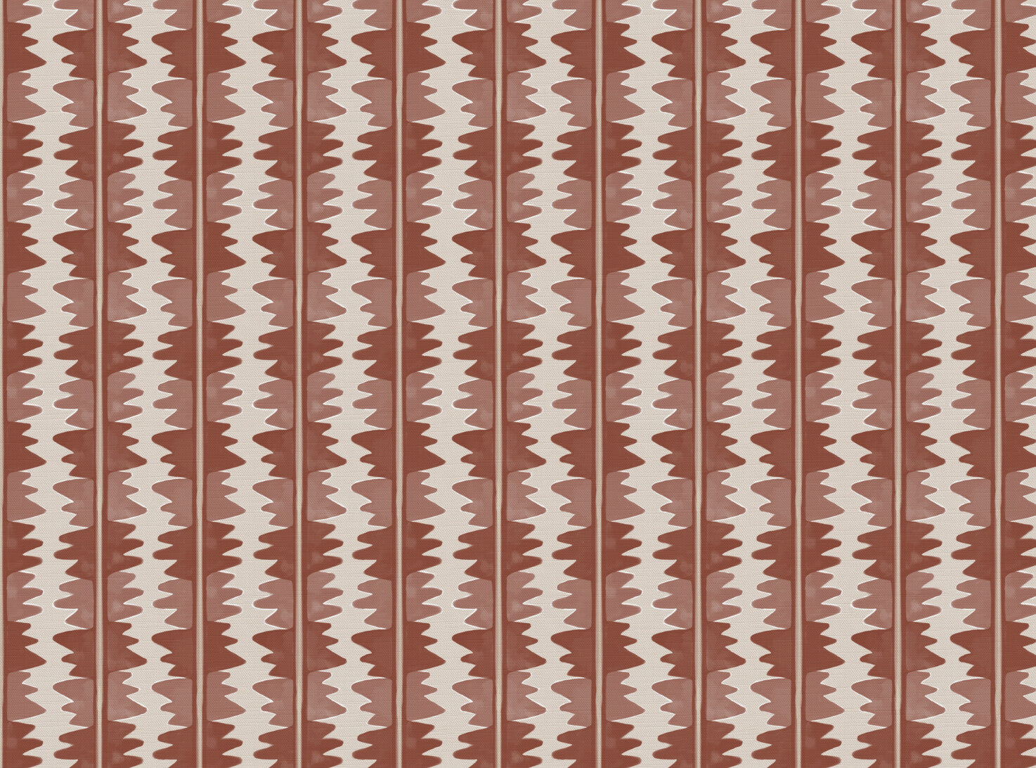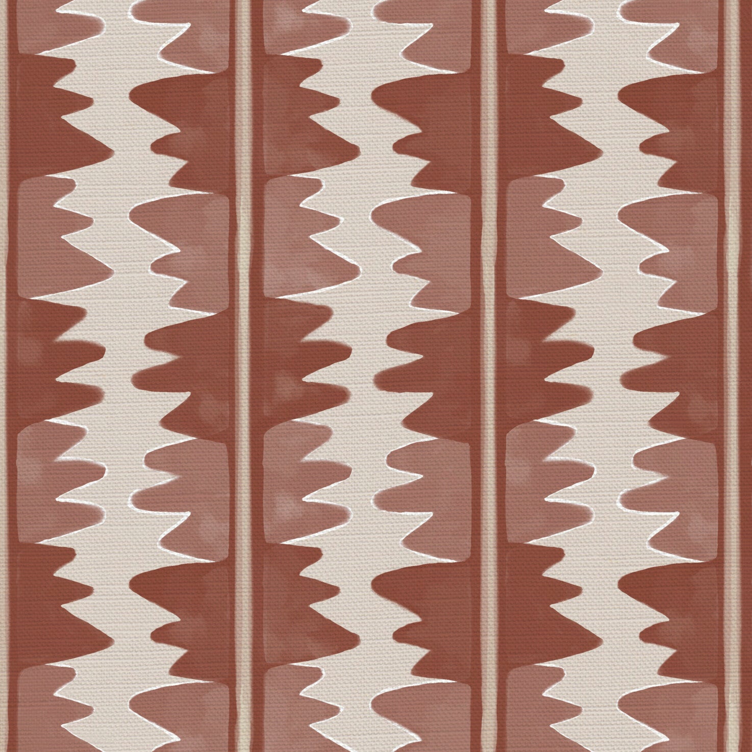 The vertical zigzag stripe has a hand-shaped quality slightly irregular, never rigid giving this design warmth and approachability. It’s graphic without feeling harsh, structured without feeling strict. The repeat creates a natural sense of flow, making it easy to live with while still adding confident pattern to a scheme.