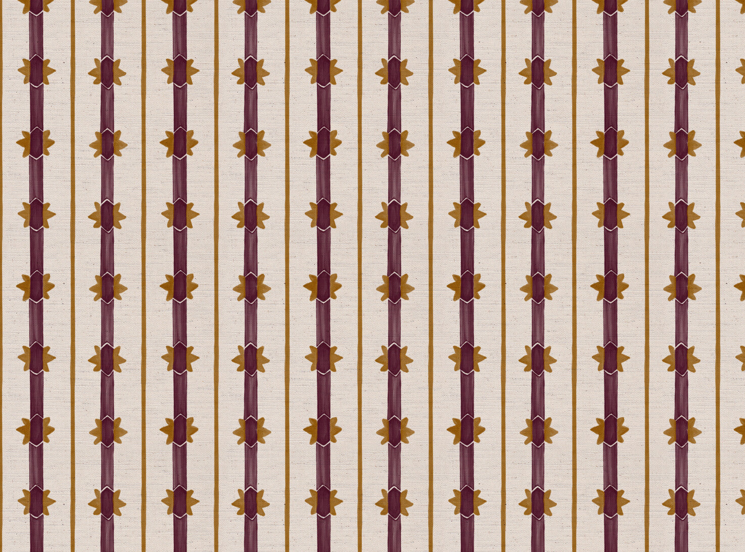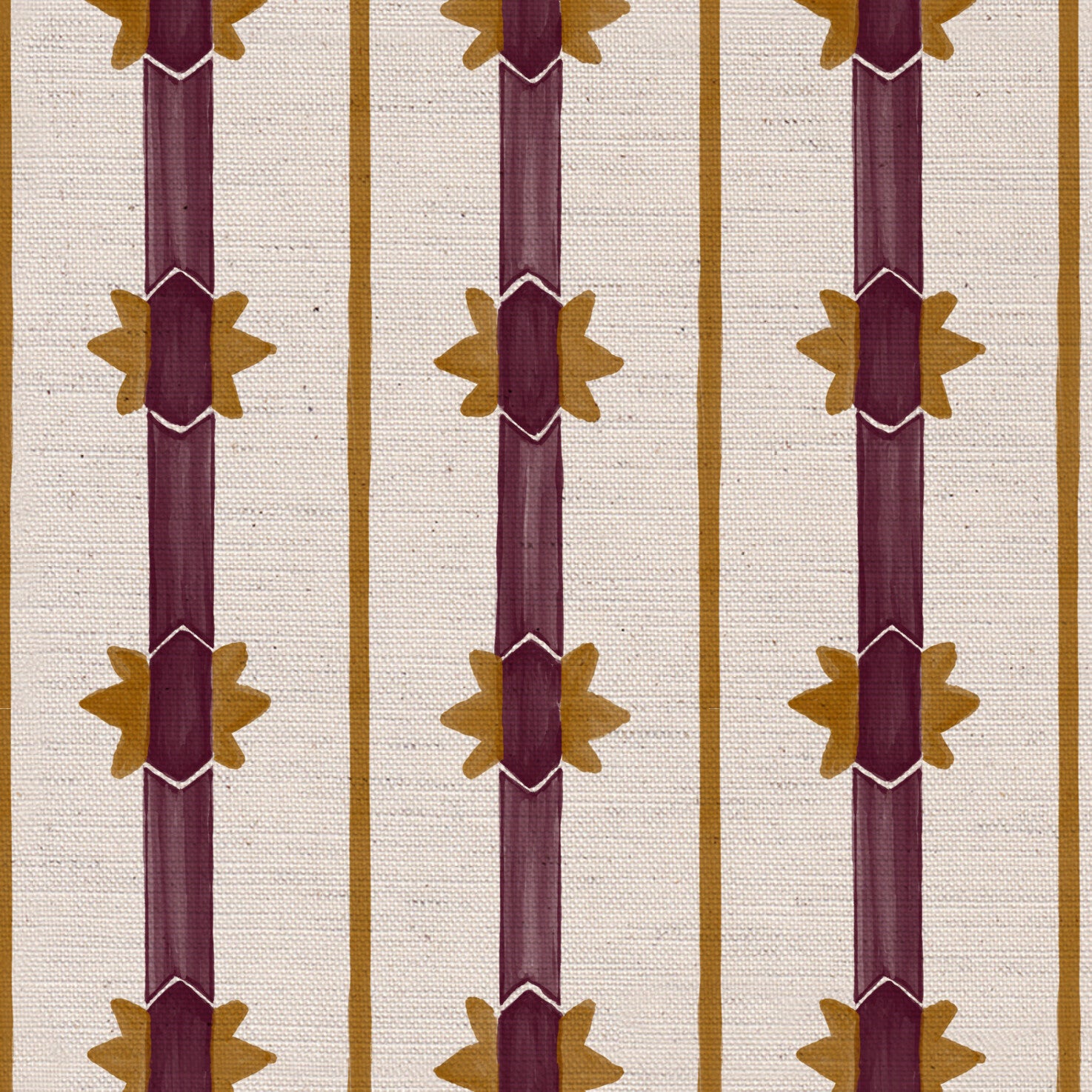 Bring warmth and rhythm into your interiors with Starfall stripe by Ashleigh Mercia Fabrics, an inspired nod to the original beloved Starfall that balances modern design with artisanal charm. Hand painted stripes in rich tones create a striking fabric with a nod to the bold ochre starbursts of Starfall, evoking a sense of light, energy, and vintage glamour.